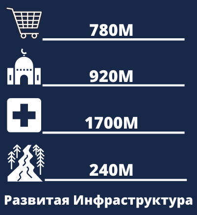 В шаговой доступности от жилого комплекса расположены детские учреждения, остановки общественного транспорта, станция метро, магазины, городской рынок, крупнейшие бизнес-центры Ташкента, продуктовые супермаркеты, кафе, рестораны и спортивные комплексы. Также возле ЖК расположена река «Минор» и «Белая Мечеть»